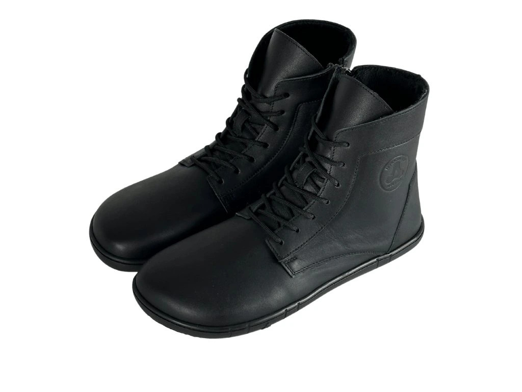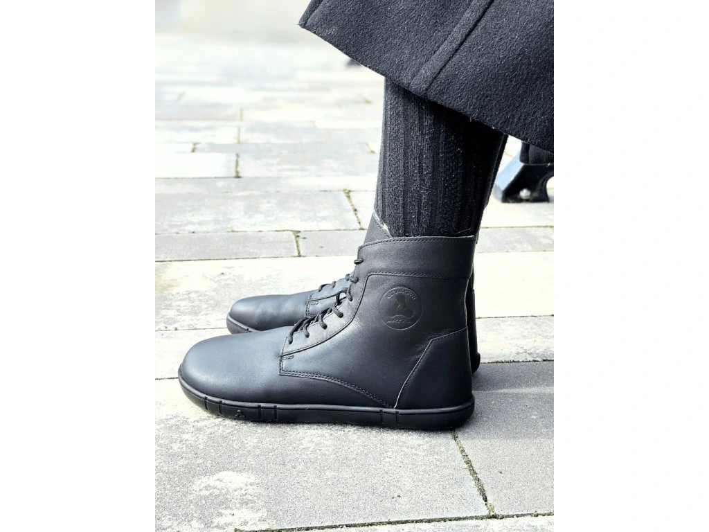 Antal Venero Black Fedett Bőr Bélelt Barefoot Bakancs