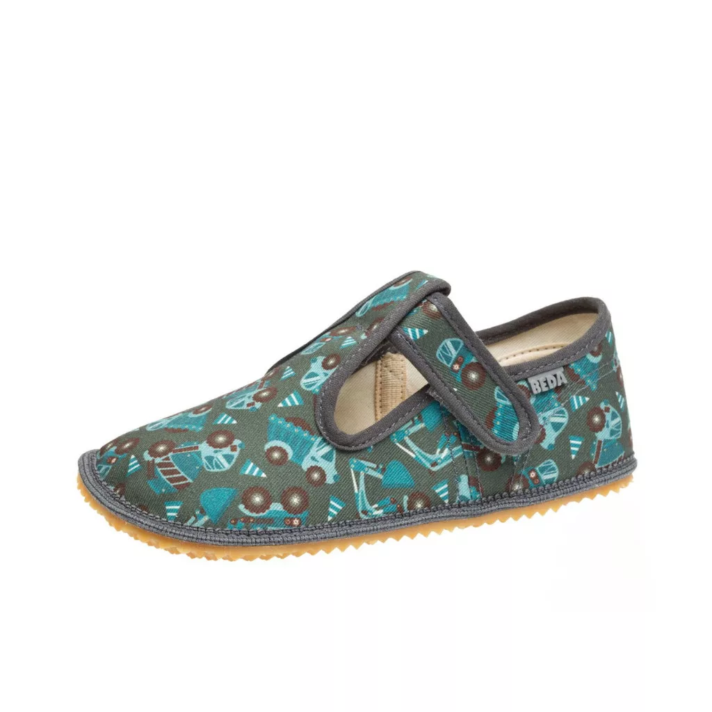 Beda barefoot gyerekcipő normál/széles lábra, vászonból. A talpbetétet kivéve magasabb rüsztre is elég, keskeny sarokra is biztosan illeszkedik. Tépőzáros pántjával könnyű fel- és levenni. Nyári utcai cipőnek, benti cipőnek vagy papucsnak egyaránt ideális.