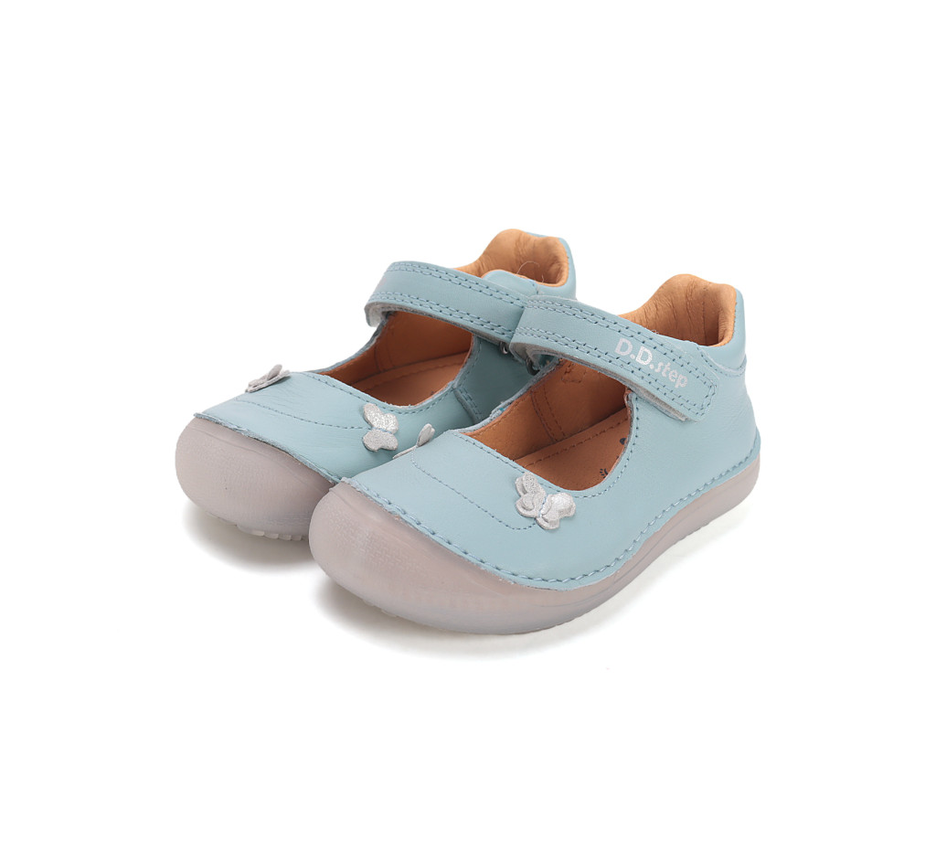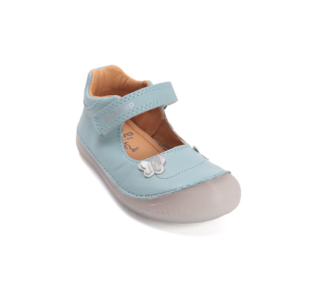 D.D.Step barefoot gyerek balerina keskeny/normál lábra, kivehető barefoot (lapos és rugalmas) talpbetéttel. Zárt orra extra védelmet nyújt, a tépőzár meggyorsítja az öltözködést, és biztosan a lábon tartja a cipőt. Nyári utcai cipőnek, benti cipőnek vagy papucsnak egyaránt ideális. A D.D.Step Magyarország egyik legkedveltebb gyerekcipő márkája.
