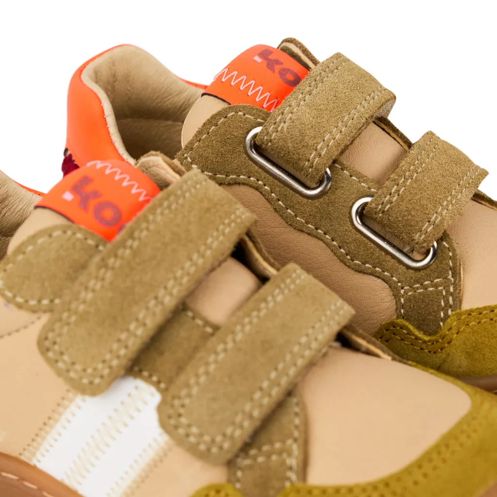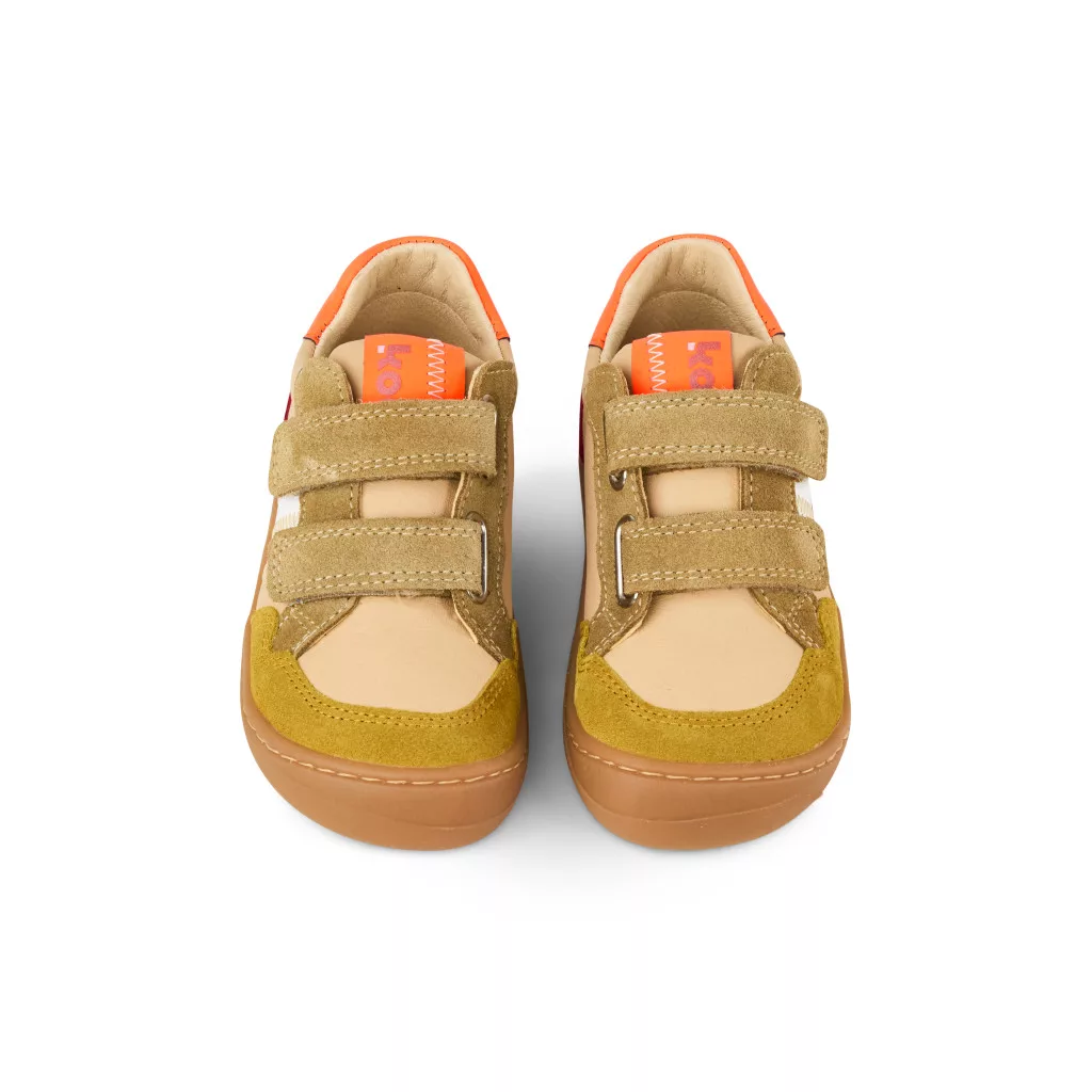 Trendi barefoot gyermek edzőcipő mindennapi használatra, csiszolt bőr felsőrésszel és tépőzárral. Talpa a Koel Korkid 0,5 mm-es, rugalmas, strapabíró gumitalp. Kivehető, bőrbarát, krómmentes bőr talpbetéttel rendelkezik. Károsanyag-mentes anyagokból és technológiákkal készül. Elsősorban keskeny/középszéles lábra ajánljuk.