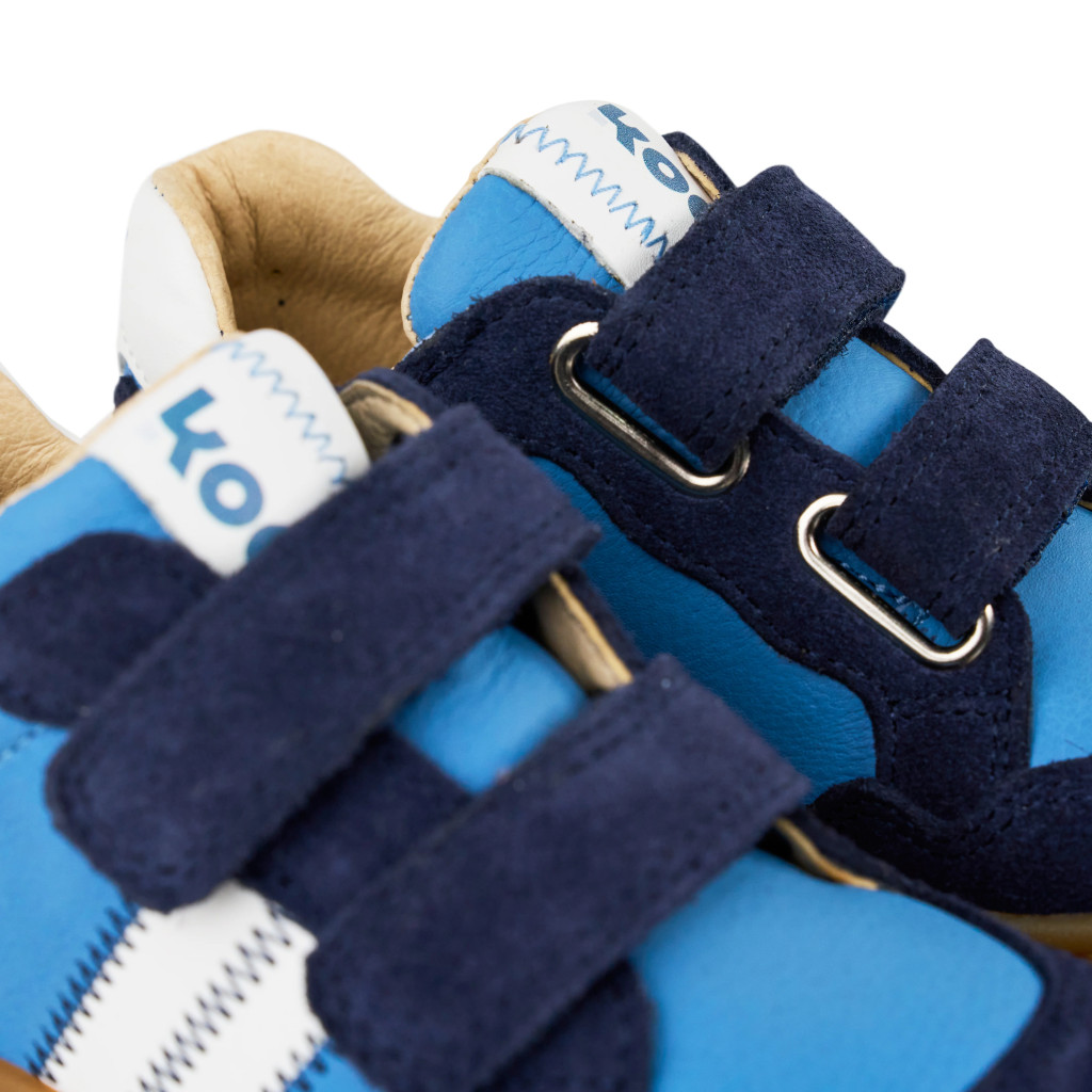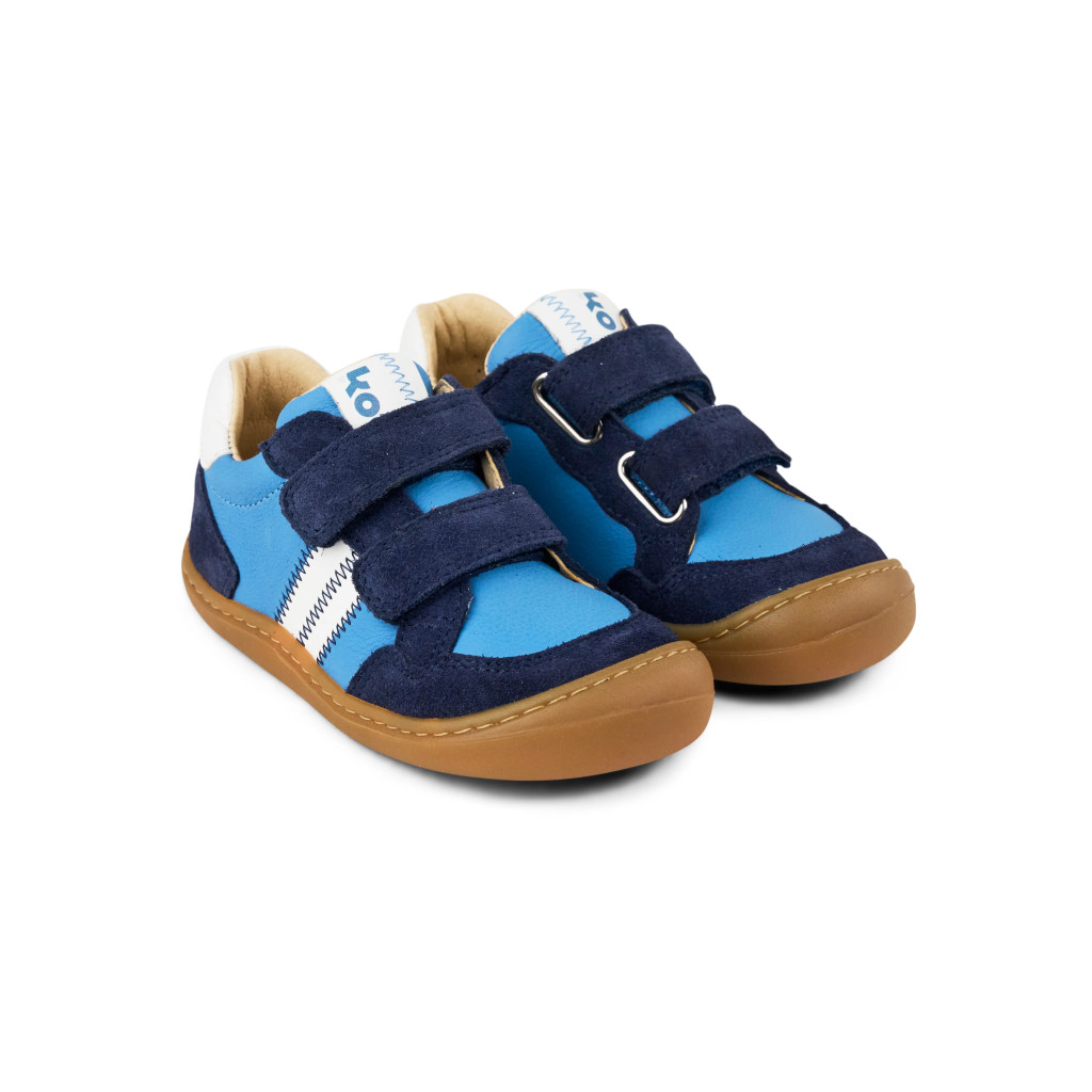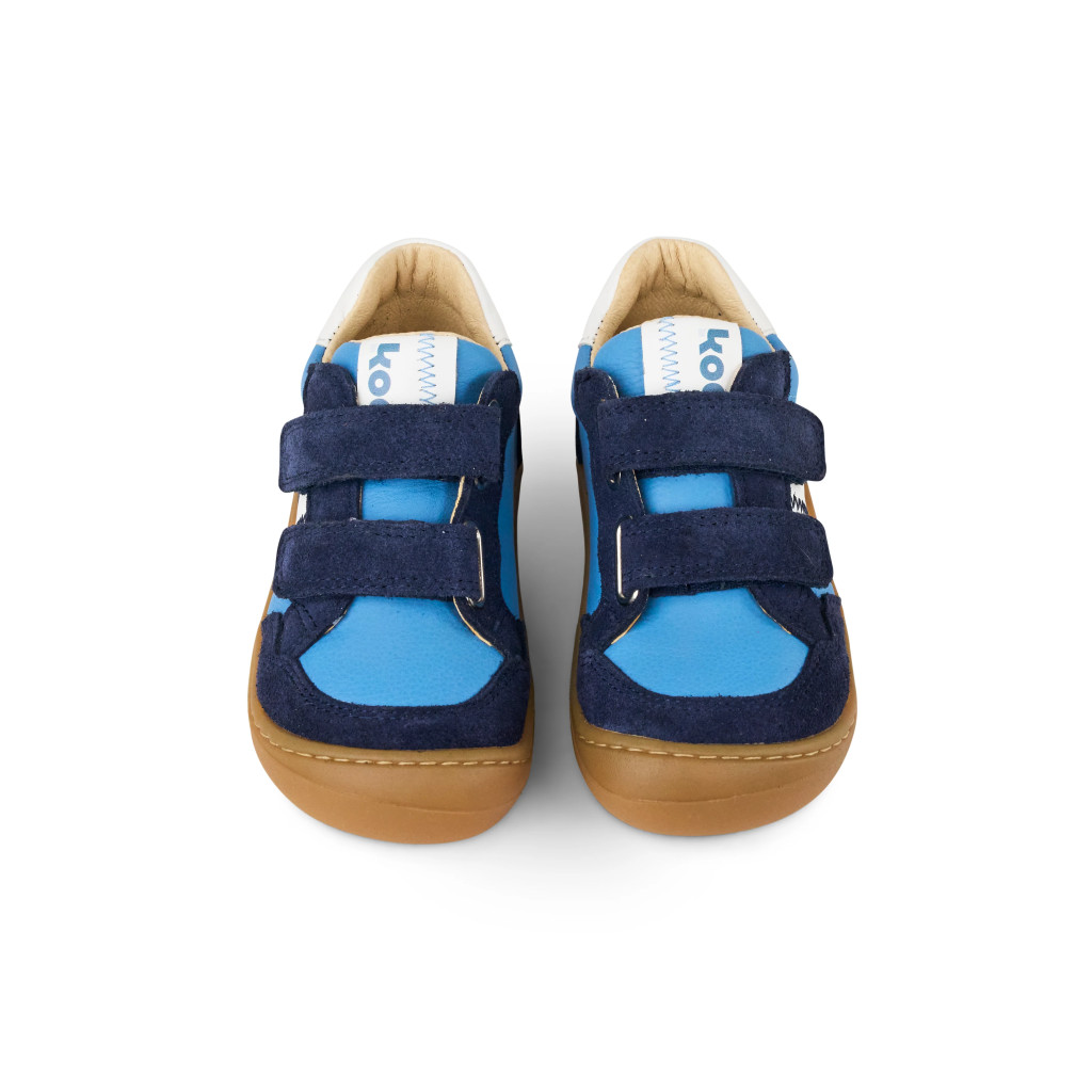 Trendi barefoot gyermek edzőcipő mindennapi használatra, csiszolt bőr felsőrésszel és tépőzárral. Talpa a Koel Korkid 0,5 mm-es, rugalmas, strapabíró gumitalp. Kivehető, bőrbarát, krómmentes bőr talpbetéttel rendelkezik. Károsanyag-mentes anyagokból és technológiákkal készül. Elsősorban keskeny/középszéles lábra ajánljuk.